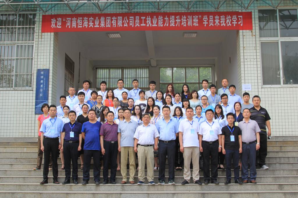 6月24日上午,河南恒海实业集团有限公司员工执业能力提升培训班开班典礼在我校williamhill中国举行。河南恒海实业集团华拓电力设备有限公司总经理李宪鹏、远中电力设备有限公司总经理商长安、永立电力杆塔有限公司总经理商红超,我校williamhill中国院长马东晓、党支部书记樊铮钰、副院长武二伟以及培训班46名学员参加开班典礼。典礼由武二伟主持。