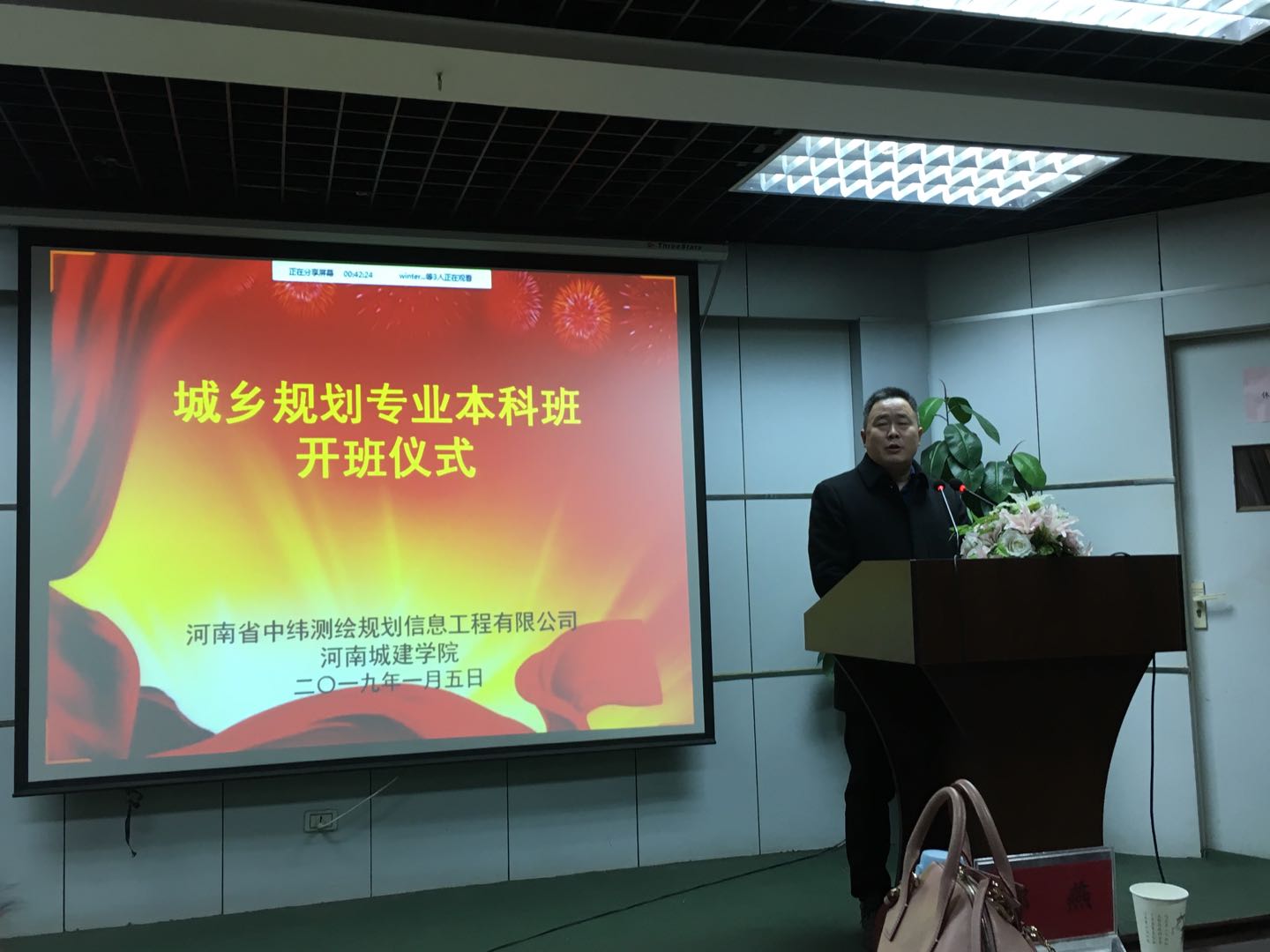 1月5日上午,在焦作中纬公司会议室,我校与河南省中纬测绘规划信息工程有限公司举行“城乡规划专业本科班开班仪式”。中纬公司董事长黄贤忠、副总经理田德林、邓波、张红方等公司高管出席开班仪式,我校williamhill中国书记樊铮钰、培训部主任石磊、郑金梅,建筑与城市规划学院院长邢燕、副院长郭汝、部门相关负责人以及30余名合作班学员参加会议。会议由中纬公司副总经理张红方主持。
